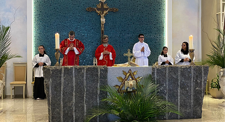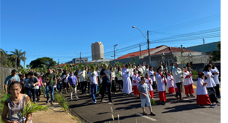 Todo ano, a Semana Santa tem início Domingo de Ramos. A celebração marca a entrada de Jesus em Jerusalém montado em um jumentinho (símbolo da humildade) e aclamado pelo povo simples que O aplaudia como “Aquele que vem em nome do Senhor”.