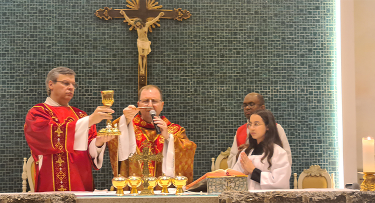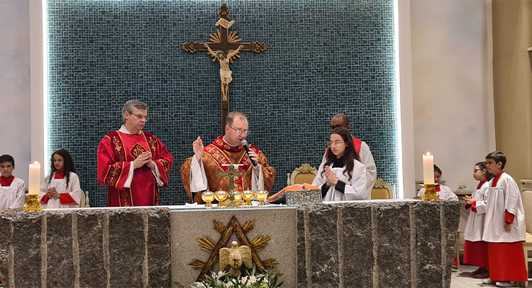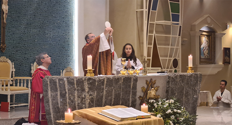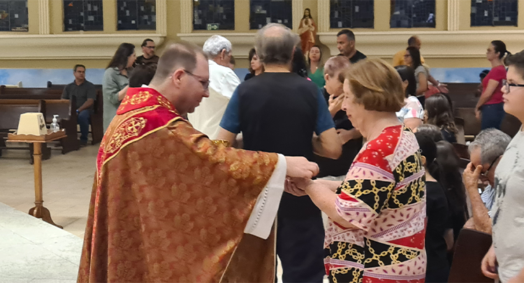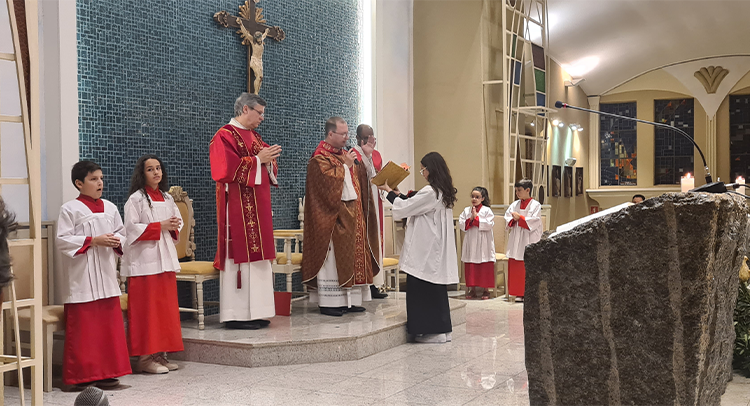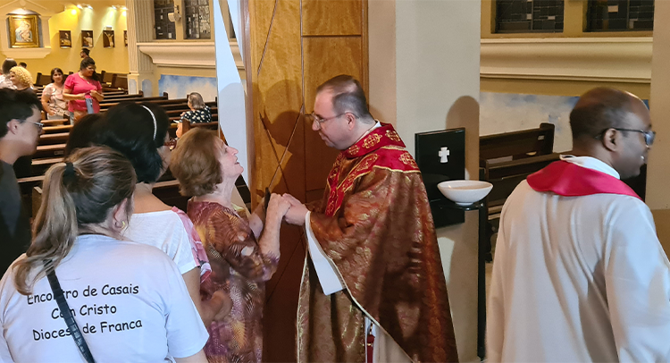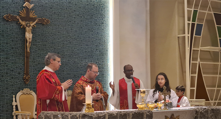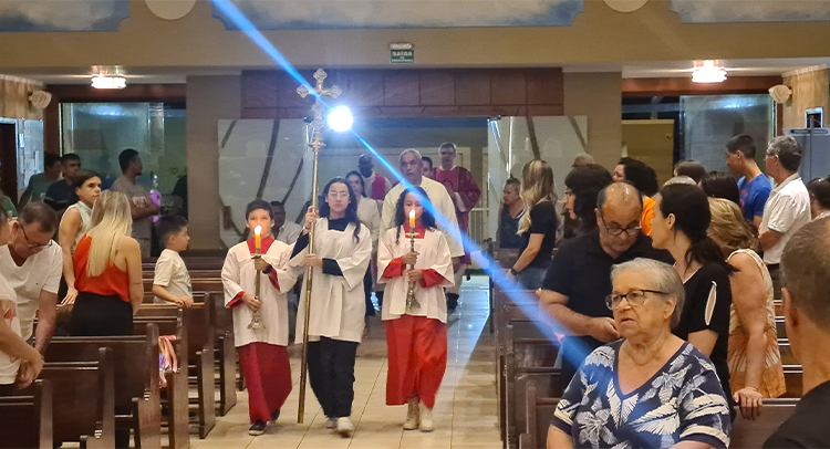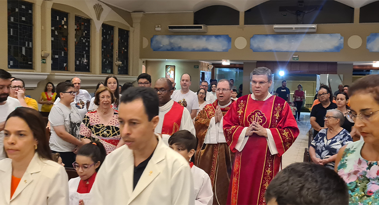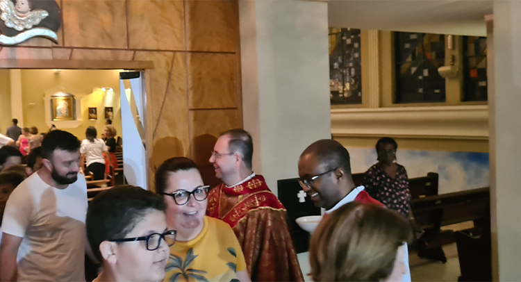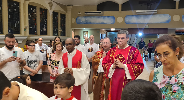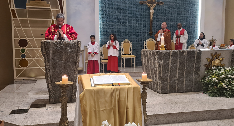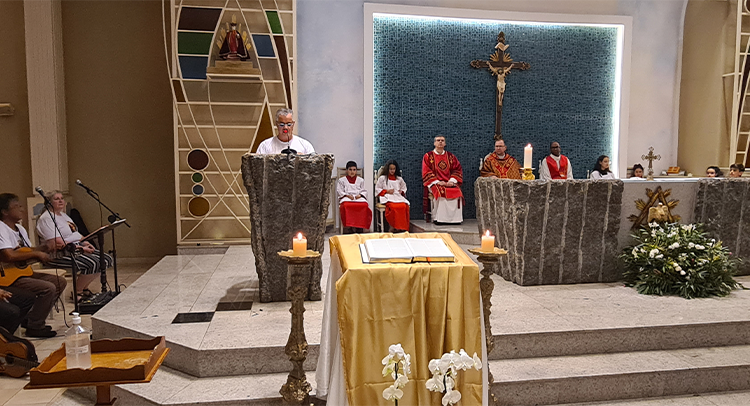Celebrada no dia 19/09/2023 as 19:00, o 2º dia do Tríduo de nossa co-padroeira Santa Ifigênia. A celebração foi presidida pelo Padre Rogério da Catedral da nossa cidade, Nossa Senhora da Conceição, que também contou com a participação do Padre Flavio e Diácono Amélio, a liturgia foi conduzida pelo ECC Encontro de Casais com Cristo. Padre Rogério na sua homilia desenvolveu o tema Jesus chama a permanecer com ele, Jesus sempre chamou o ser humano a viver segundo seu evangelho, permanecendo junto dele, e faz uma pergunta a assembleia: como tem sido nossa resposta ao chamado de Jesus, deu exemplo dos apóstolos, que cada um da sua maneira atendeu ao chamado, auxiliados pela graça divina, e graça ao testemunho dos apóstolos, hoje temos a igreja Católica que nos ajuda e nos capacita a buscar uma vida de amor junto aos nossos irmãos. Padre Rogério lembrou que nesta data celebramos São Januário Bispo e Mártir (São Gennaro) Santo Italiano, considerado um homem bom, caridoso e zeloso com as coisas da fé e que foi morto por professar sua fé ao Deus único. No Final Padre Rogério recebeu os agradecimentos de um Casal do ECC que entregou um presente a ele. Novamente uma celebração festiva e alegre, e acompanhada por vários paroquianos e membros do ECC da paroquia.