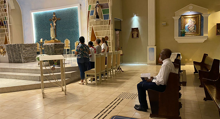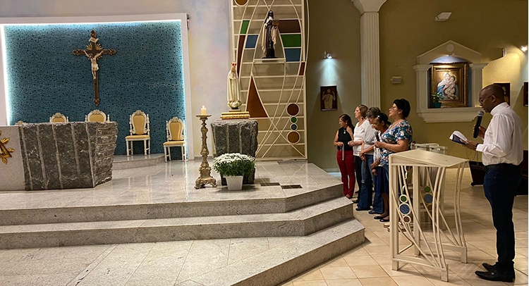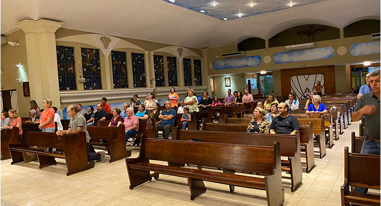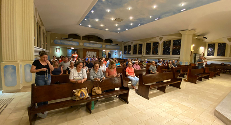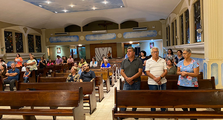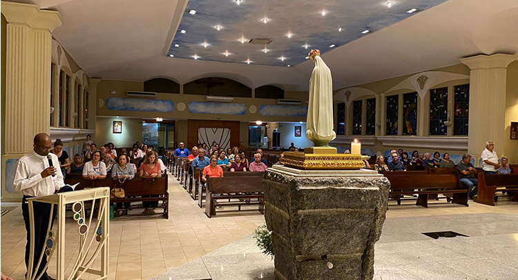 No dia 27 de outubro de 2023, atendendo ao apelo do Papa Francisco, que instituiu esse dia como: Dia Mundial de Oração pela Paz, para unir em oração os povos católicos, cristãos de todas as denominações e todos os homens e mulheres de boa vontade. Alem de orações, tambem um dia de jejum. Nossa Paróquia rezou o Santo Terço pela paz no mundo. A adesão foi grande com a participação de muitos paroquianos e pessoas de vários movimentos da paroquia. Padre Flávio presidiu o Terço com a participação de todos os presentes. O Santo Terço foi finalizado pelo Padre Fábio que cantou a Salve Rainha e emocionou a todos os presentes.