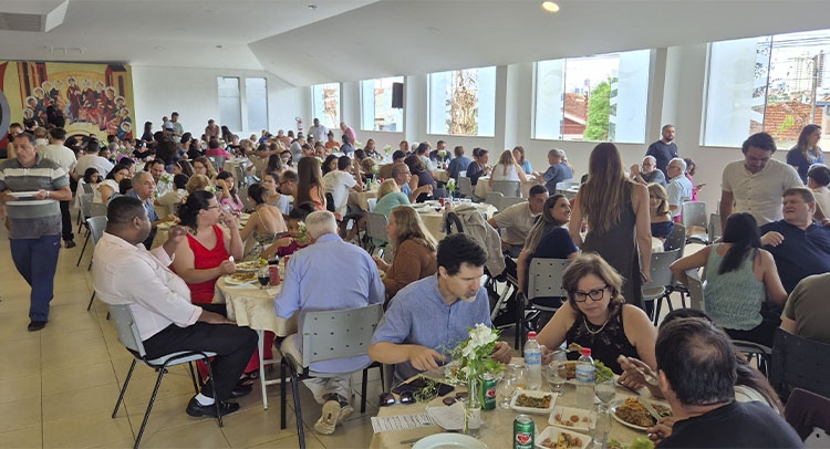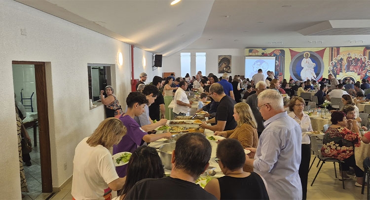 Aconteceu neste domingo dia 19/10 o almoço paroquial organizado pelo conselho paroquial juntamente como os Padres da paroquia, houve um envolvimento de muitos movimentos e realidades.  O objetivo do almoço vai muito além da arrecadação financeira, mas um momento de encontro, partilha e convivência entre os paroquianos, e também muitas pessoas de fora que veio participar do evento. Aconteceu também neste almoço um leilão de objetos, todos doados por pessoas e empresas da comunidade paroquial. Padre Fabio agradeceu em nome dele, do Padre Flavio e do Diácono Amélio a presença de todos e também das pessoas que ajudaram na organização  e realização do evento.