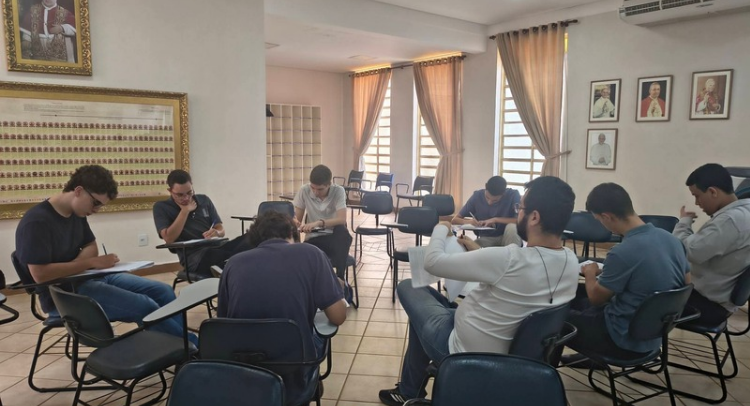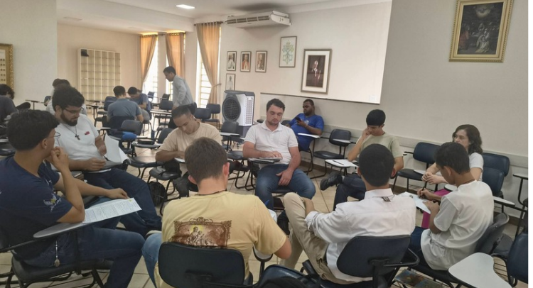 Dando continuidade, Pe Márcio Rigollin trouxe a sua contribuição falando sobre espiritualidade, encerrando orientando os vocacionados à oração pessoal a partir do texto bíblico Atos dos Apóstolos 2,42-47.