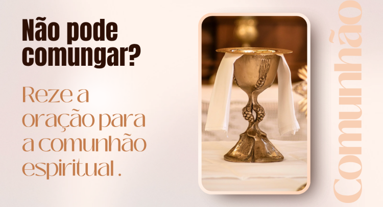 A oração para a comunhão espiritual escrita por Santo Afonso Maria de Ligório é um texto simples e de profundo significado, foi elaborado como uma forma de união ao Corpo de Cristo quando não é possível receber o sacramento. É importante trazer a visão de Santo Afonso Maria de Ligório, o qual nos diz que o “desejo de receber Jesus Sacramentado e dar-Lhe um amoroso abraço, como se já O tivéssemos recebido”, é Comunhão Espiritual. Isso quer dizer que, mesmo que as pessoas, por algum impedimento, não consigam receber sacramentalmente Jesus, ela pode unir-se a Ele de uma forma tal qual como a pessoa que conseguiu recebê-lo na Hóstia Santa. O primeiro mandamento da Igreja é participar da Missa inteira aos domingos e outras festas de guarda, e abster-se de ocupações de trabalho. Mas muitas pessoas têm o desejo de receber a Hóstia, mas não podem devido a alguma realidade que precisa ser regularizada perante Deus e a Igreja, que é o caso dos que vivem em segunda união. A Igreja permite que essas pessoas possam fazer a sua Comunhão Espiritual todas as vezes que forem à Missa. Se você não pode comungar sacramentalmente, porque vive esta realidade ou porque mora em um lugar que não há acesso à Missa com frequência, mais ainda, porque está em situação de pecado grave, NÃO DESANIME. Busque os meios de estar na graça de Deus, lute pela santidade e o desejo de estar no céu, una-se a Jesus que se dá em alimento em todas as Missas. Por isso eu o convido a rezar a oração para a Comunhão Espiritual de Santo Afonso de Ligório.
