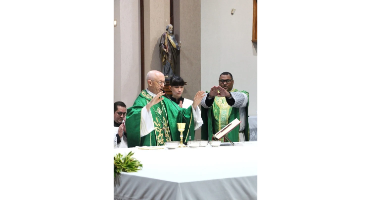 A Santa Missa foi presidida por Dom Paulo Roberto Beloto, Bispo Diocesano, e concelebrada pelo pároco padre Omar Rachad, pelos padres Márcio Rigolin e Pe. Flávio, além da presença dos diáconos Gabriel Mello e Rubens Andrade.